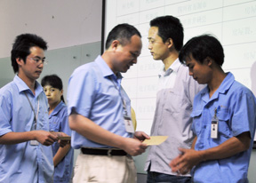 2008年6月2日16点,大富公司A栋五楼大会议室举行了一场特别仪式,以常务副总经理李锋为首的公司领导,亲自向21名因5.12地震导致家里房屋遭受重大经济损失的四川籍员工发放经济援助金。